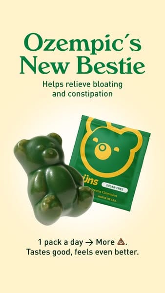 Grüns, the gummy supplement brand that just sold to Unilever for $1.2 billion in under 3 years has been running a simple creative on Meta that piggybacks directly on the GLP-1/Ozempic wave. Instead of competing with the trend, they made themselves a companion to it. The ad targets the millions of people already on or considering GLP-1 medications and says: you need us too.